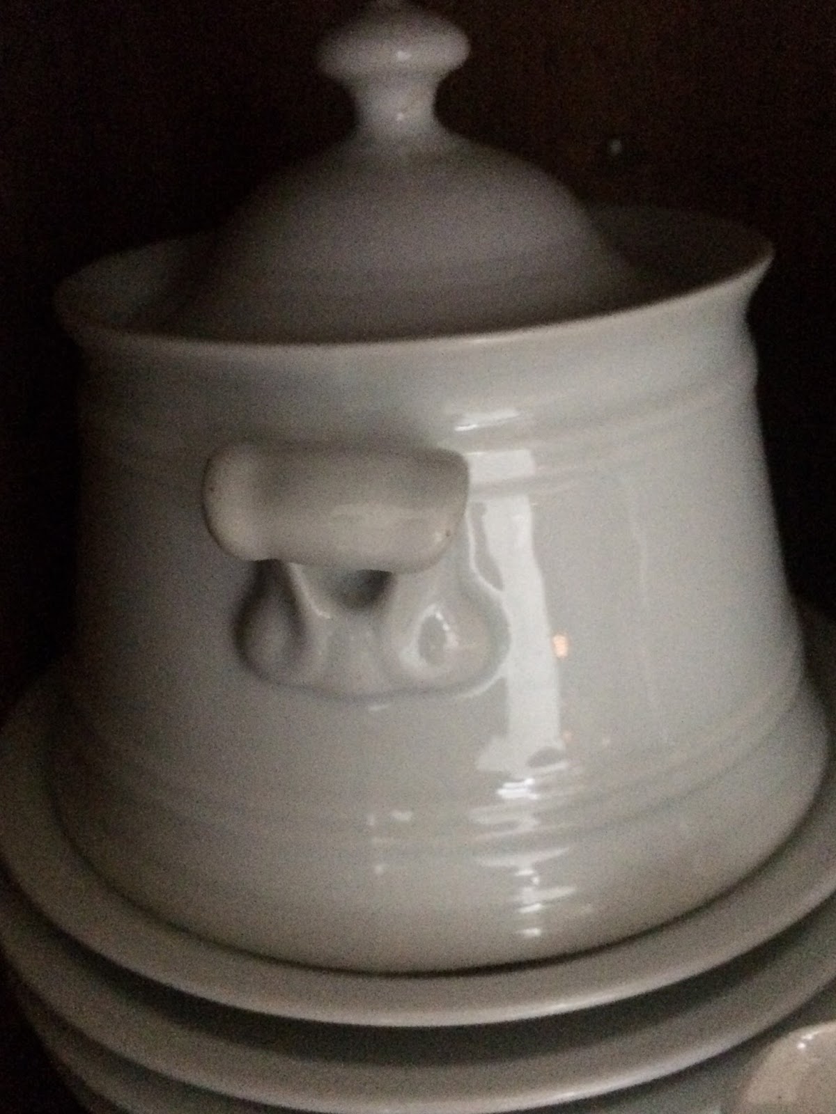 Patrzę i już myśl rodzi się, a z nią pomysł, by na większej szafeczce czy też ławeczce ustawić mniejszą:-) Ważne tylko, by obie były białe.